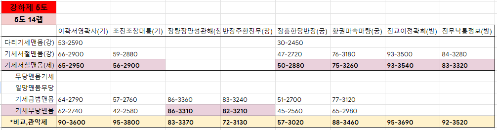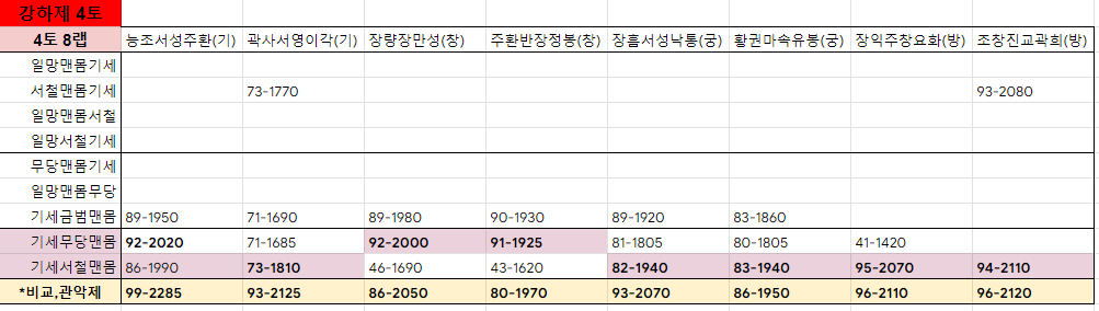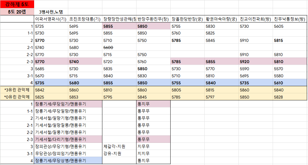 제갈각이 있는 개척과, 제갈각이 없는 개척으로 티어가 나뉘며 제갈각 개척은 전부 단무지라 할지라도 제갈각이 없는 개척보다 효율이 좋습니다.